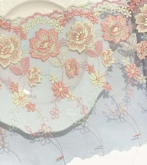Made Of Soft Net in Powder Blue Base With Floral Embroidery In Bubblegum Pink And Cream.