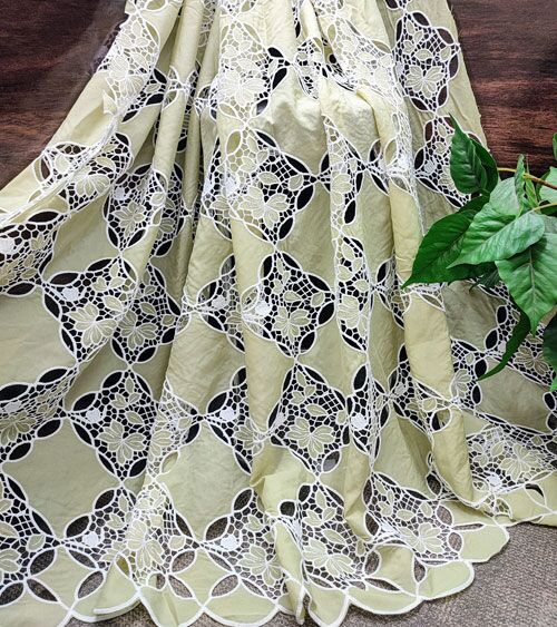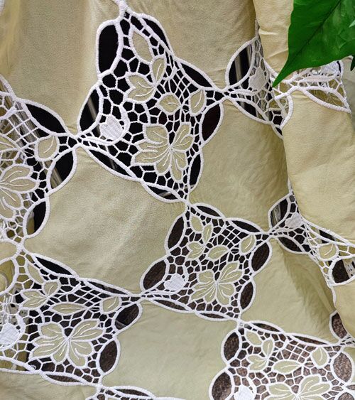 Imported Cutwork Korean Fabric In Floral Design With Outline Embroidery.