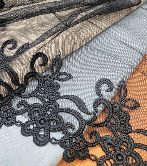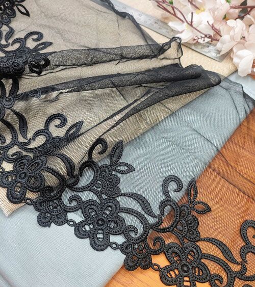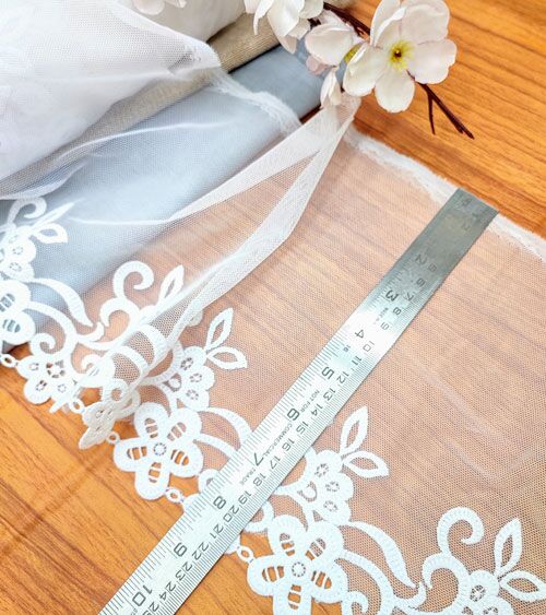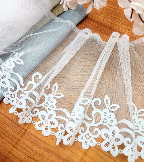 Imported Net Lace In Prmium Quality In Floral Design With Guipure Fringe.