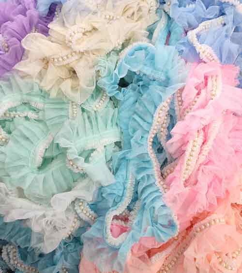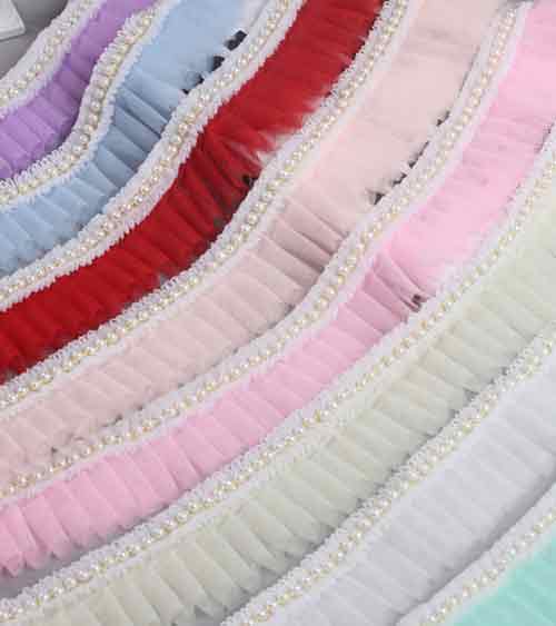 Made Of Soft Net Pleated Frills With Pearls Edging