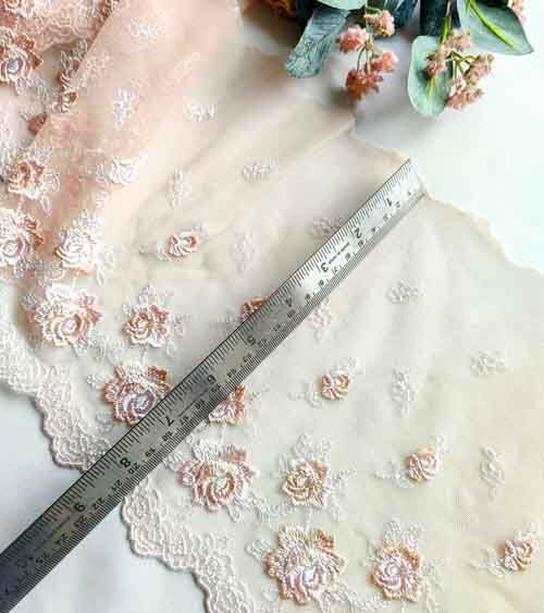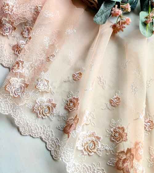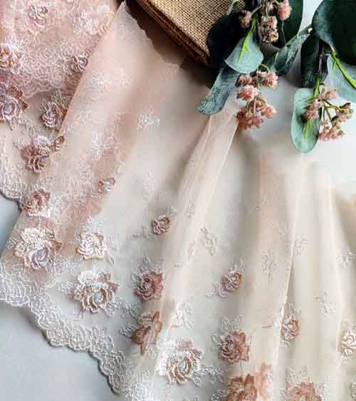 Rose Embroidery Nude Shade Net Lace No 805