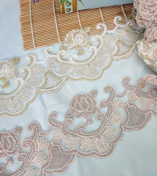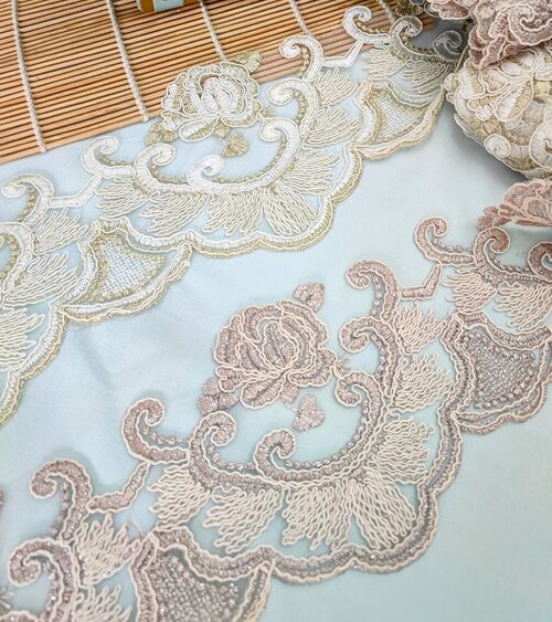A Stunning Feathery Look Rose Centre Cord Scallops Lace.