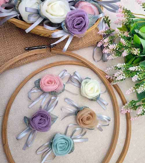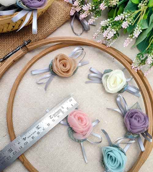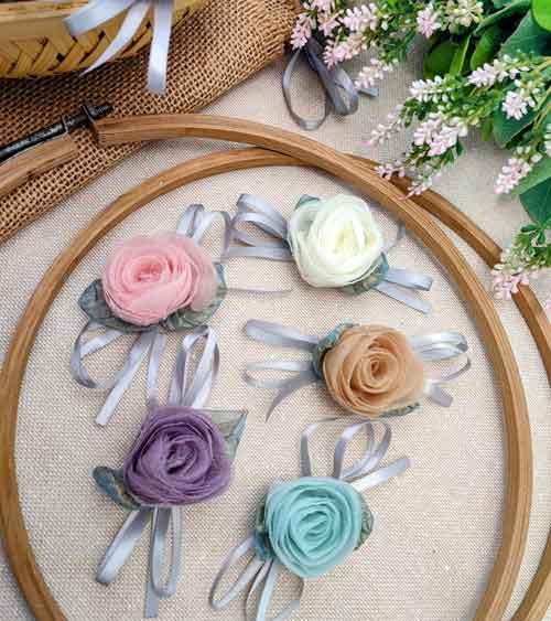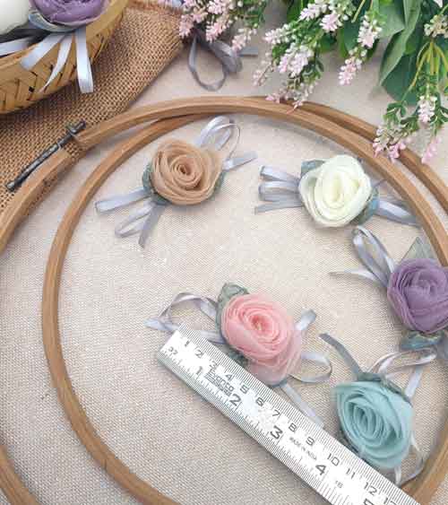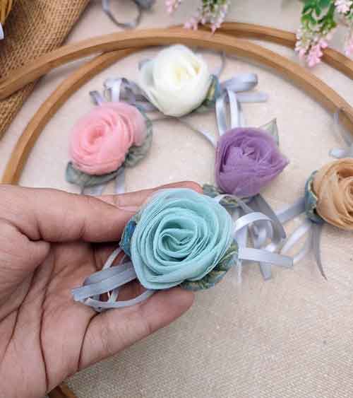A Rustic And Revered Looking Layered Petals Rose Made With Textured Base With A Touch Of Silver Satin Bow At The Base. Very Dainty And Light Weight And Fluffy Look.