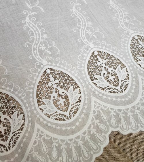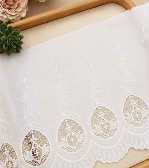 Imported Swiss Cotton Hakoba Fabric With Cutwork Embroidered Border On Both Sides.